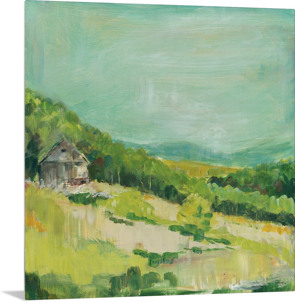 Art Decorative Art Green Wall Art Landscapes Barn Countryside Mountains Trees Forest Painting Sue Schlabach