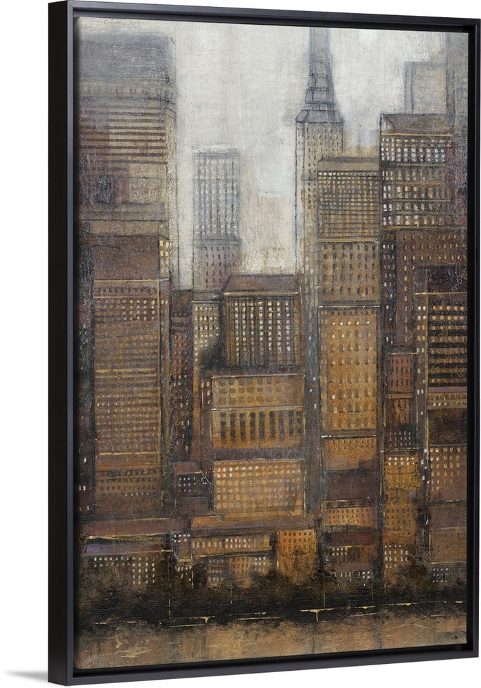 <p>Contemporary painting of tall skyscrapers in a city.</p>