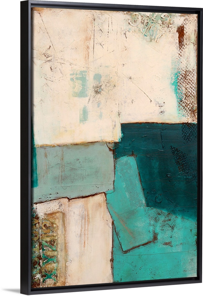 <p>Contemporary abstract painting of a color-field of weathered cream and teal colors.</p>