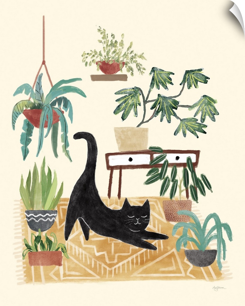 Art Bohemian Decorative Art Florals Painting Mary Urban Cat