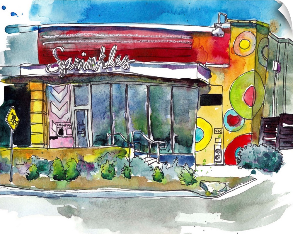 Architecture Art Cityscapes Restaurant Cafe and Bakery Decor Contemporary Art Paul McCreery Painting United States Texas Austin Watercolor