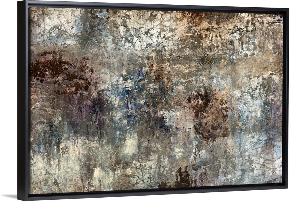 <p>Contemporary abstract painting of muddied paint splatters with creases and cracks.</p>