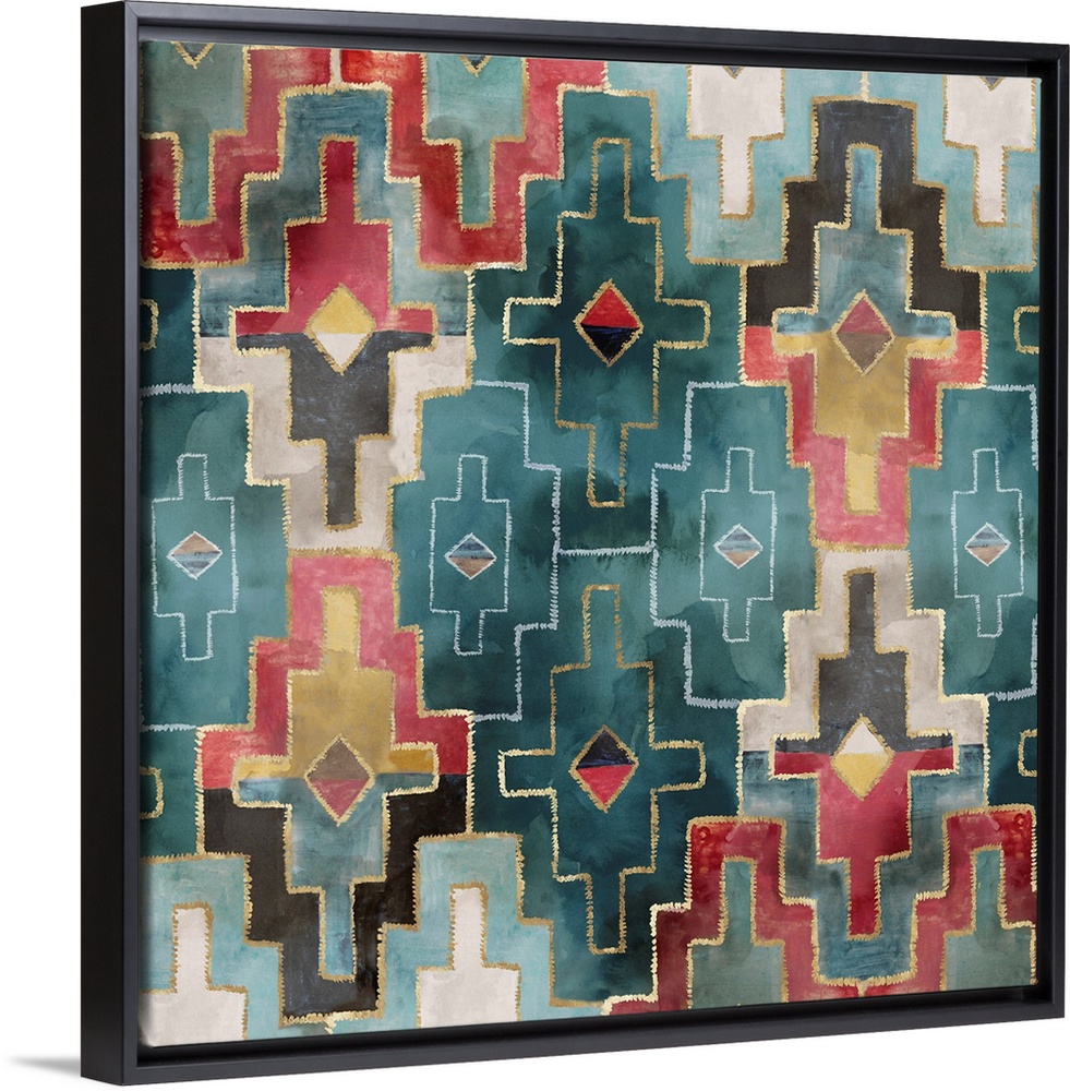 <p>Bohemian pattern in teal and red with metallic gold accents.</p>
