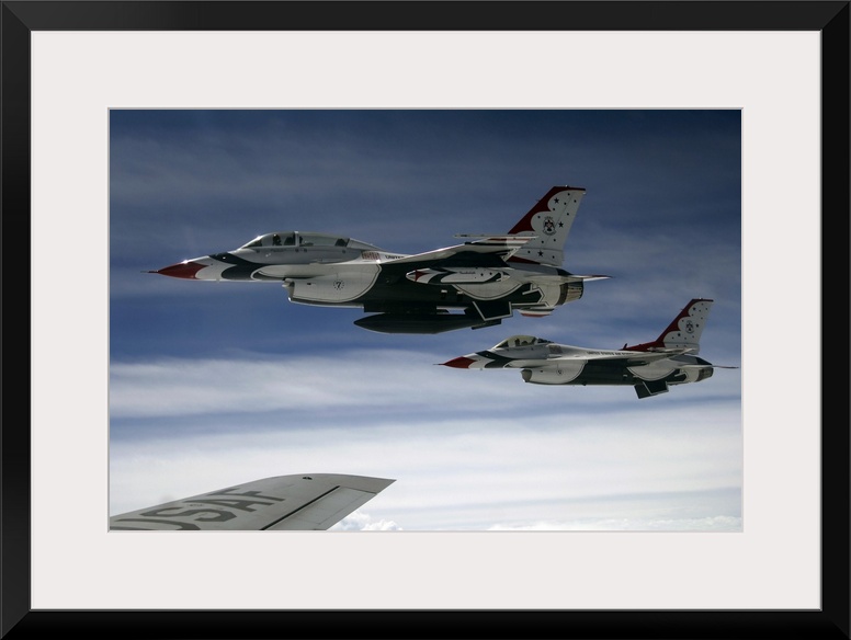 <p>U.S. Air Force F-16 aircraft fly off the wing of a KC-135 Stratotanker.</p>
