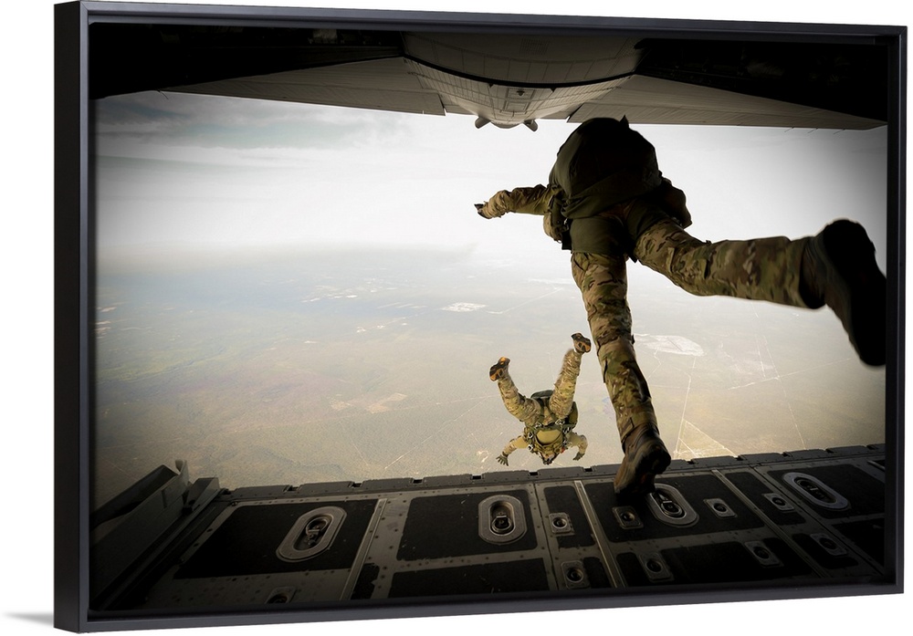 <p>April 22, 2015 - U.S. Army Green Berets from the 7th Special Forces Group jump out of a C-130H3 Hercules for Exercise Emerald Warrior at Hurlburt Field, Florida.</p>