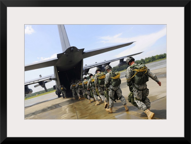 <p>U.S. Army Rangers board a U.S. Air Force MC-130 Combat Talon II.</p>