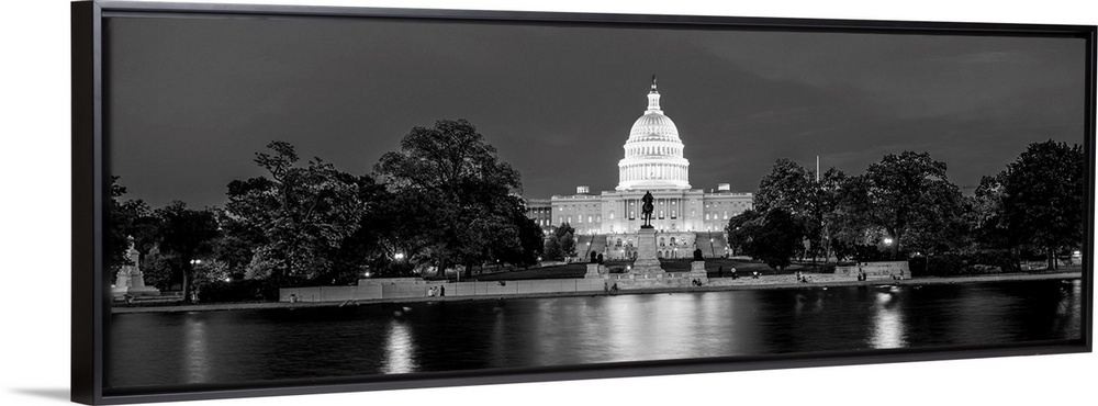 <p>Panoramic photograph of the U.S. Capitol Building at dusk with the Capitol Reflecting Pool.</p>