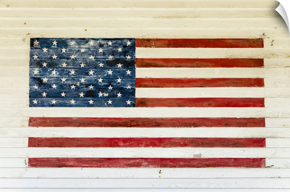 <p>US Flag painted on the side of a wooden building in the historic area of Chatham, Massachusetts, New England, United States of America, North America</p>