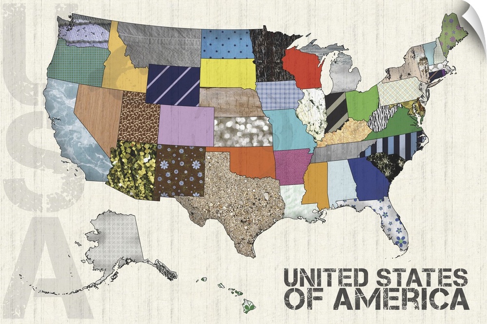 Art Lauren Gibbons Graphic Art Maps Maps by Country United States Maps Multicolor Wall Art United States