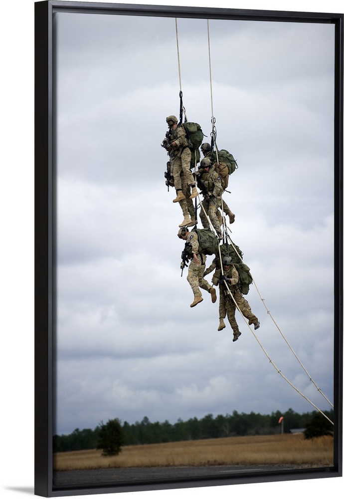 <p>U.S. Soldiers are lifted off the ground by a CH-47 Chinook helicopter.</p>