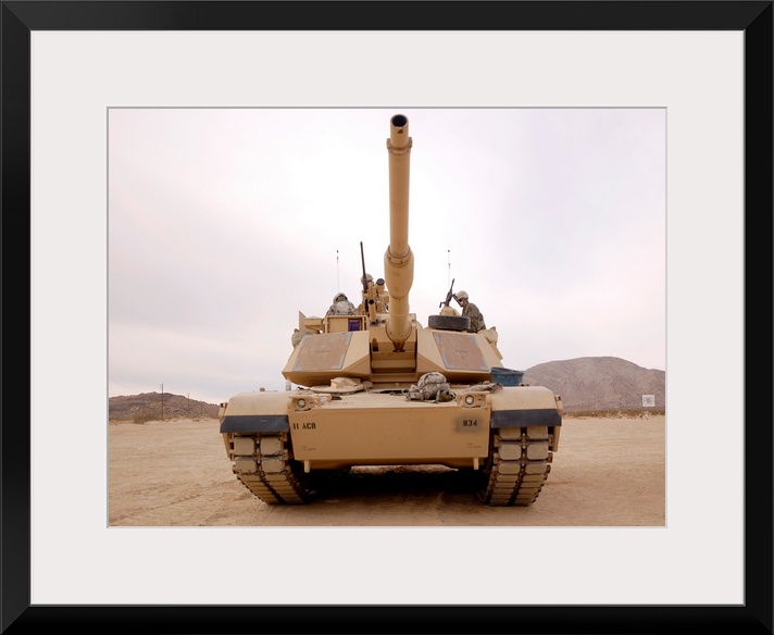 <p>U.S. soldiers perform maintenance on their M1 Abrams tank.</p>