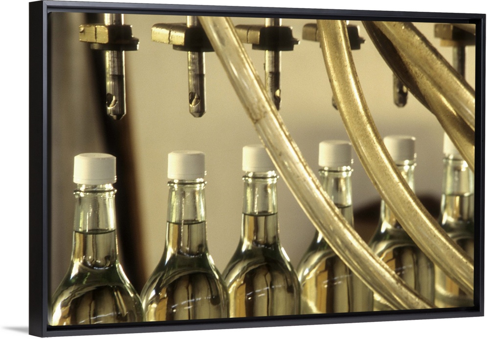<p>Caribbean: US Virgin Islands, St Croix, detail of bottles along assembly line at Cruzan Rum Distillery</p>