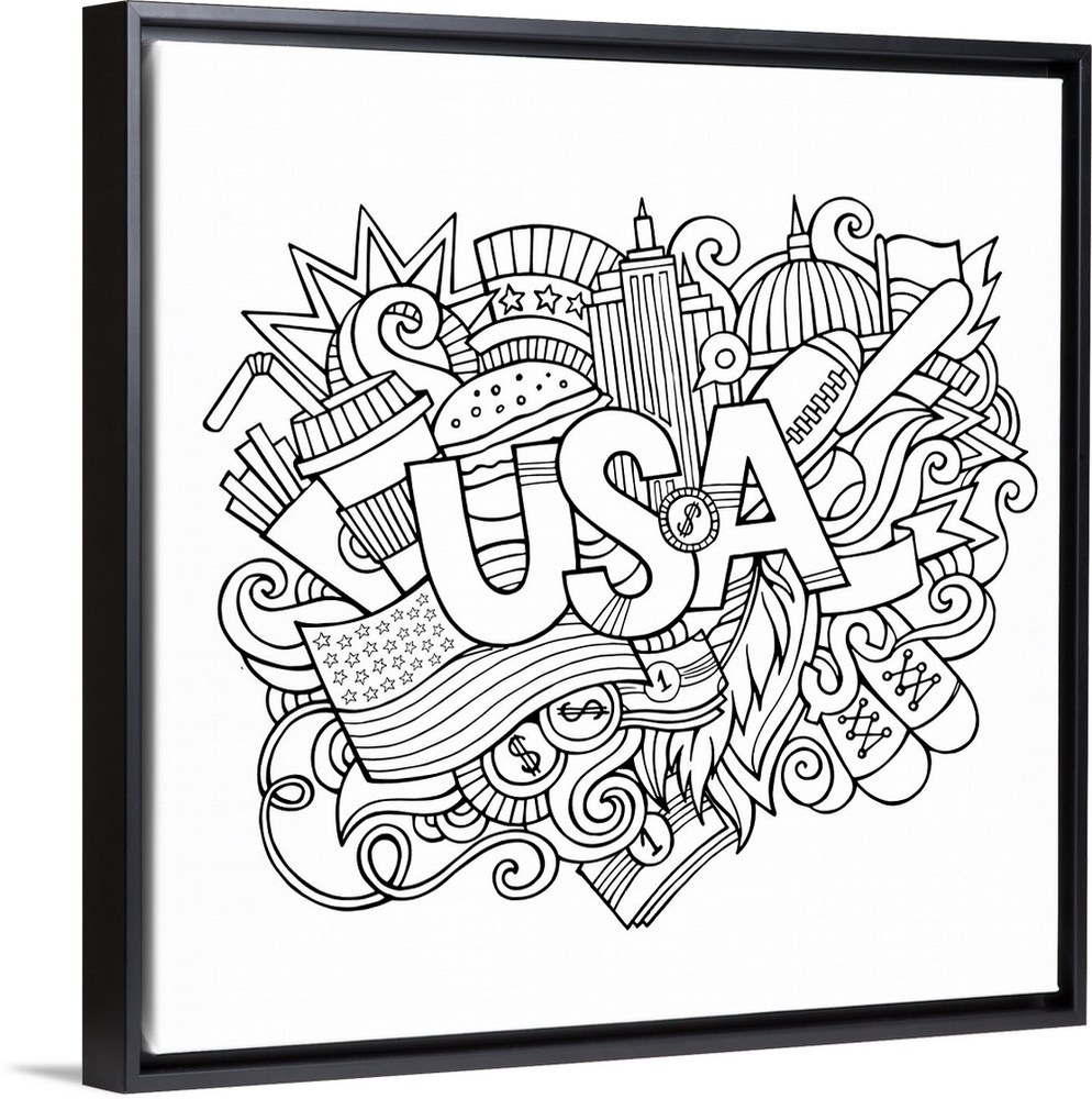 <p>An assortment of United States-themed objects such as the American Flag and skyscrapers. Perfect for Coloring Canvas.</p>
