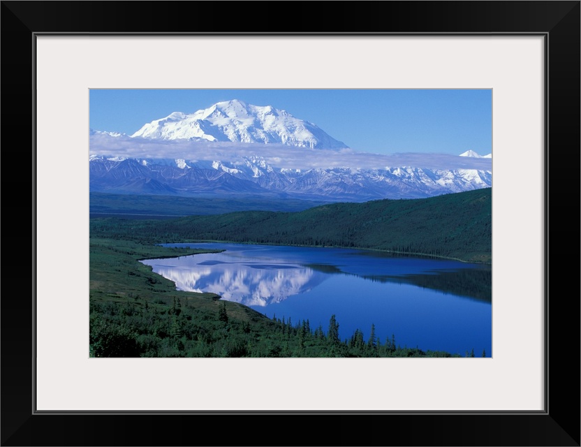 <p>USA, Alaska, Denali National Park. Mt. McKinley (Denali, 20,320 feet), the tallest peak in North America, reflected in Wonder Lake.</p>