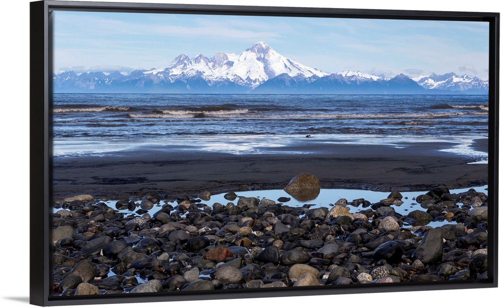 <p>USA, Alaska, Kenai Peninsula. Seascape with Mount Redoubt and beach.</p>