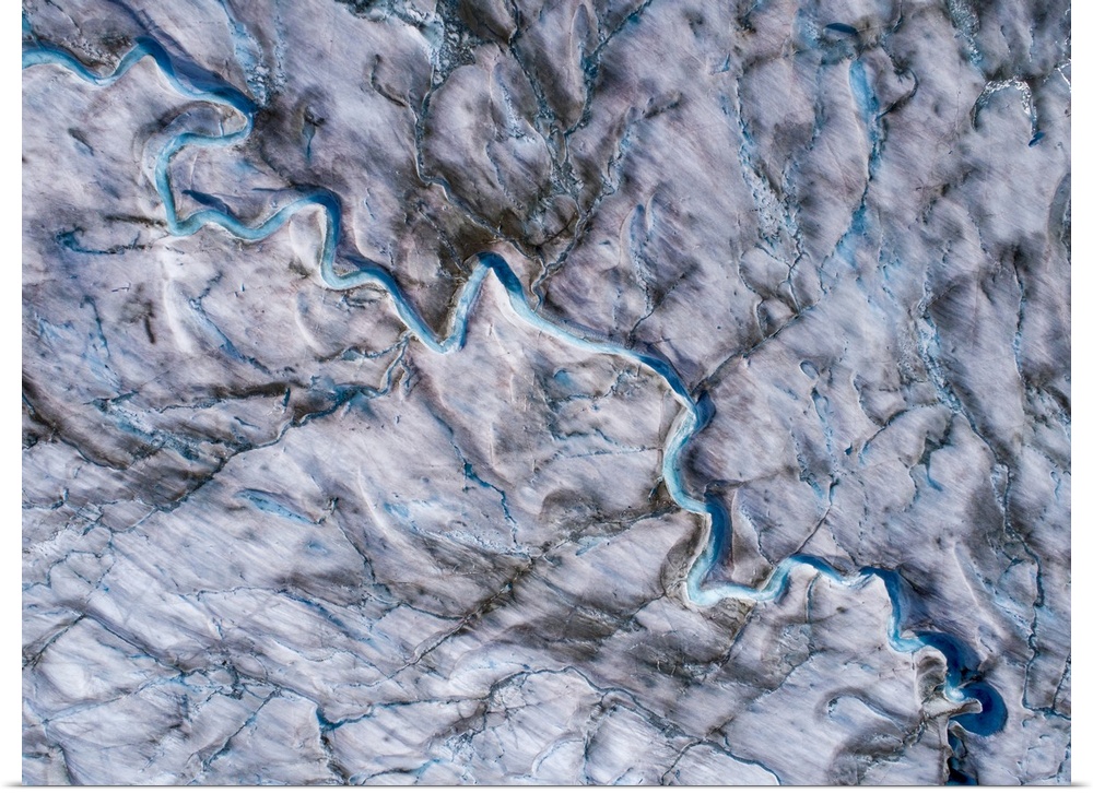 <p>USA, Alaska, Tracy arm-fords terror wilderness, overhead aerial view of meltwater streams and ponds on crevassed surface of Sawyer glacier in Tracy arm.</p>