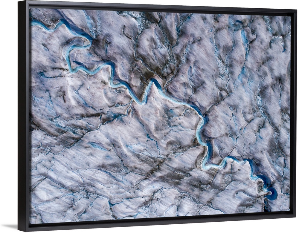 <p>USA, Alaska, Tracy arm-fords terror wilderness, overhead aerial view of meltwater streams and ponds on crevassed surface of Sawyer glacier in Tracy arm.</p>