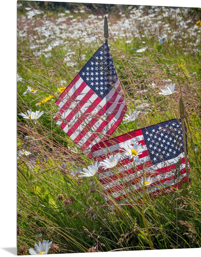 <p>USA, Alaska, Ninilchik. US flags in American Legion Cemetery.</p>