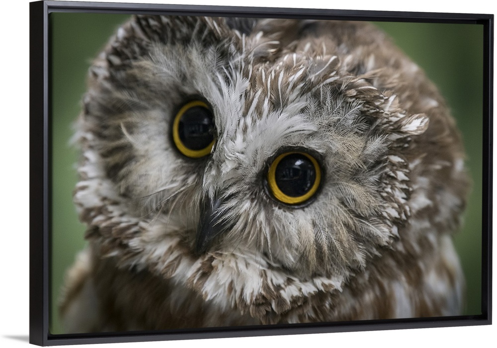<p>Usa, Alaska. This tiny saw-whet owl is a permanent resident of the Alaska Raptor Center because of injuries that make it impossible for the bird to survive in the wild. United States, Alaska.</p>