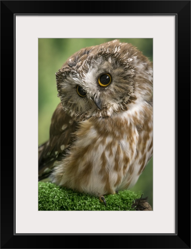 <p>Usa, Alaska. This tiny saw-whet owl is a permanent resident of the Alaska Raptor Center in Sitka. United States, Alaska.</p>