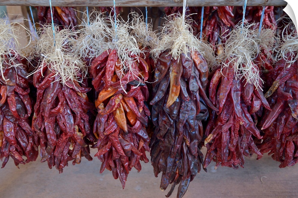 <p>USA, Arizona, Sedona, Hanging dried chili peppers.</p>