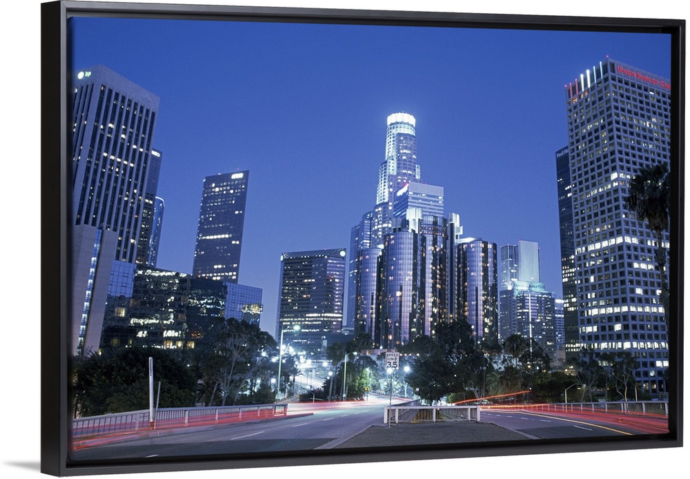 <p>Perfect for the office, a big photograph of downtown Los Angeles lit up at night with car lights shown at a long exposure.</p>