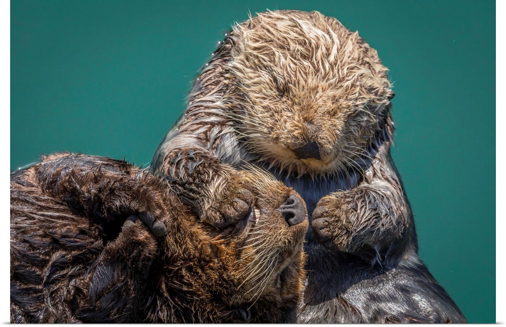 <p>USA, California, Morro Bay State Park. Sea Otter mother with pup.</p>
