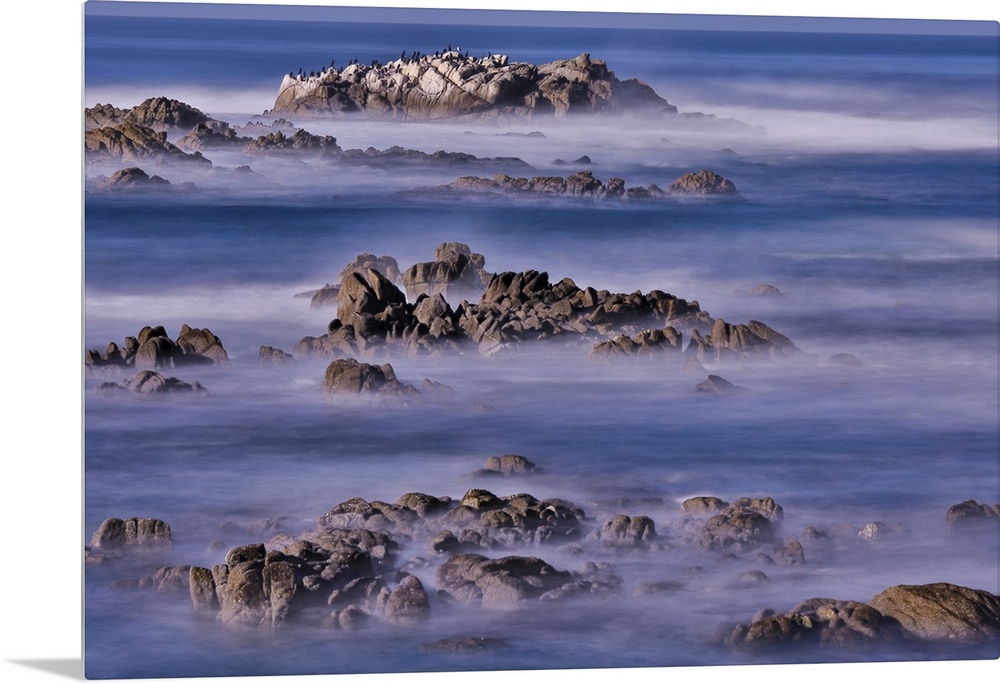 <p>USA, California, Pacific Grove. Monterey Bay, surf crashing in on rocks.</p>
