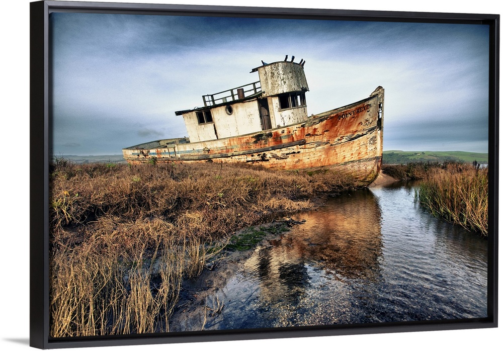 <p>Usa, California. Rotting fishing boat near Point Reyes. United States, California.</p>