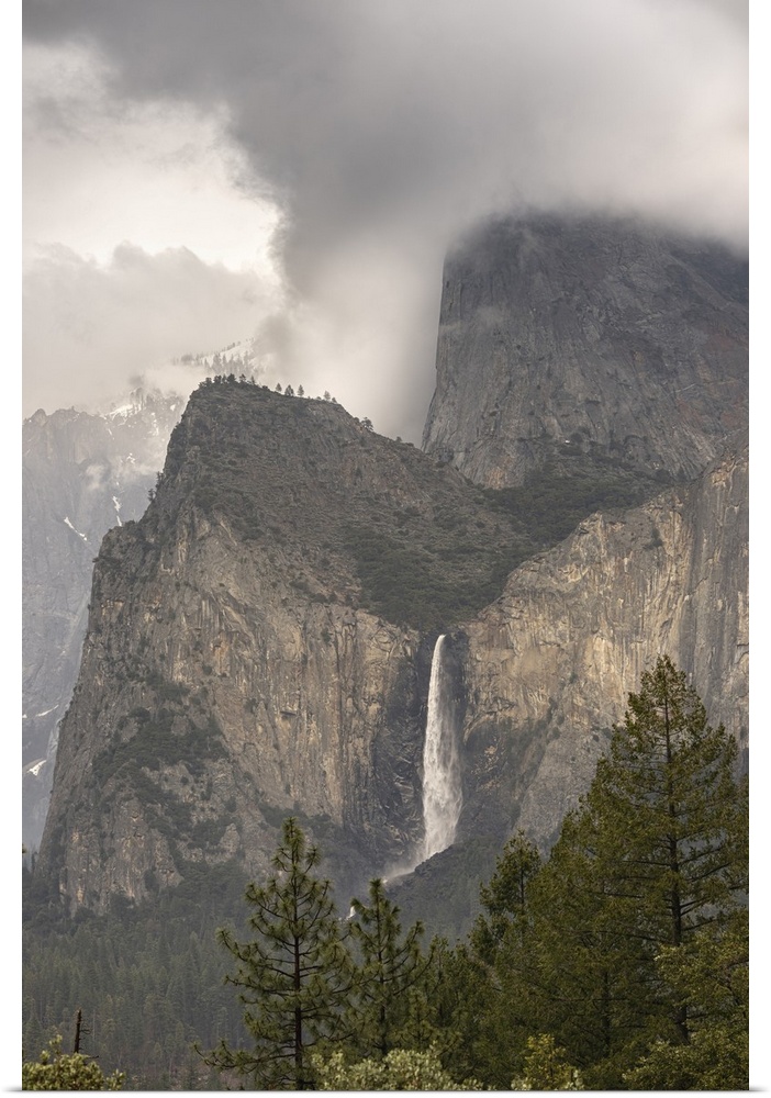 <p>USA, California, Yosemite National Park. Clouds and mountain with Bridalveil Fall.</p>