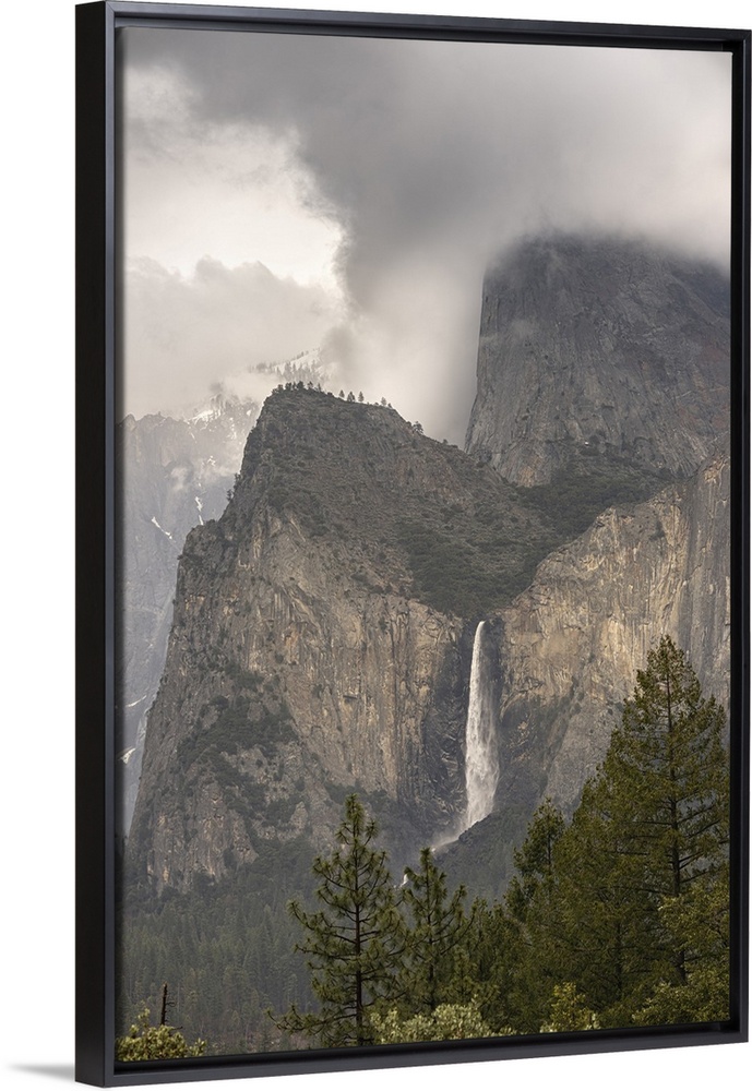 <p>USA, California, Yosemite National Park. Clouds and mountain with Bridalveil Fall.</p>