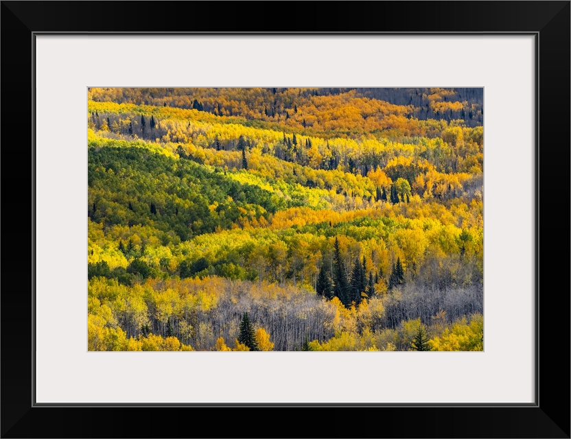 <p>USA, Colorado. Light dappled Aspen forests, Kebler Pass, Gunnison National Forest.</p>