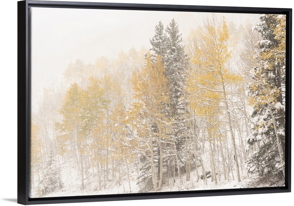 <p>USA, Colorado, Uncompahgre National Forest. Aspen and spruce after autumn snowstorm. United States, Colorado.</p>