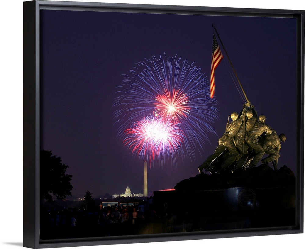<p>USA, District of Columbia, Washingon, July 4 Fireworks Behind the Iwo Jima Memorial</p>