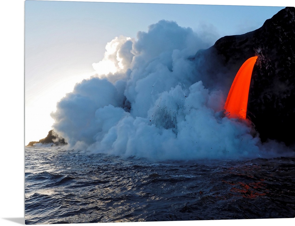<p>USA, Hawaii, Big Island. Lava from the Big Island's Pu'u O'o eruption flowing into the ocean on the Kalapana coast, Hawaii Volcanoes National Park.</p>