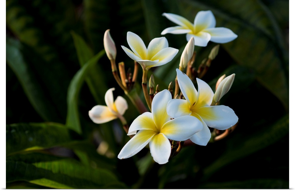<p>USA, Hawaii, Island of Hawaii, Kailua Kona, Close up of Singapore Plumeria ( Plumeria obstusa).</p>