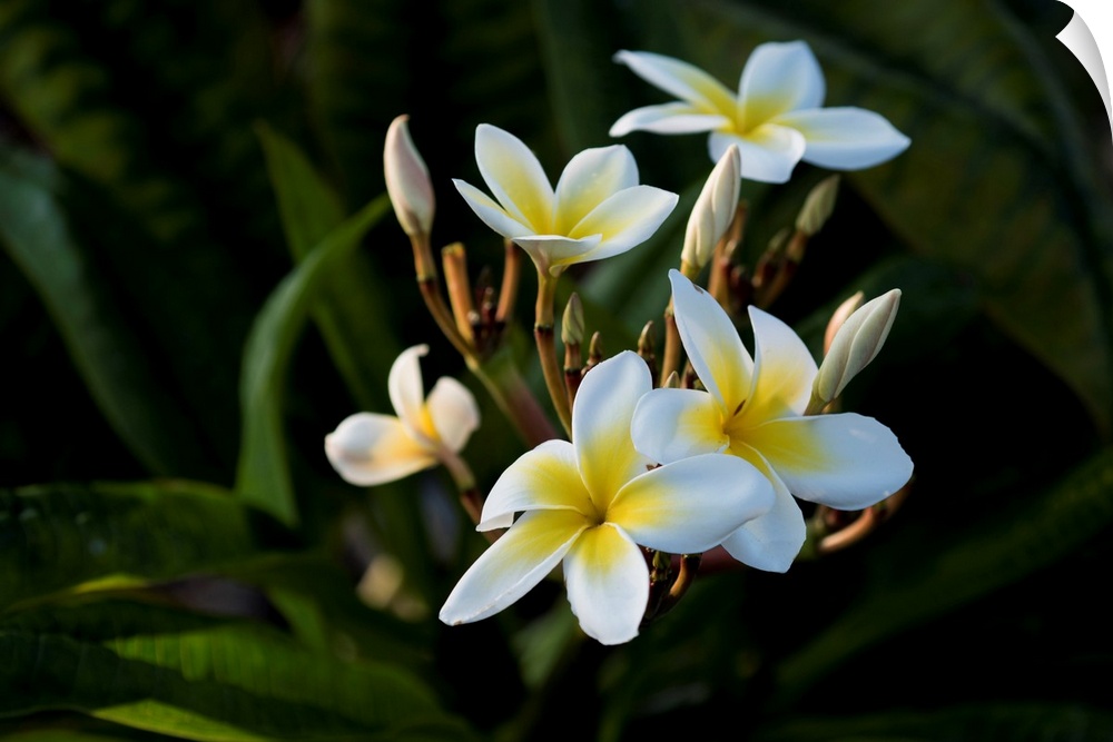 <p>USA, Hawaii, Island of Hawaii, Kailua Kona, Close up of Singapore Plumeria ( Plumeria obstusa).</p>