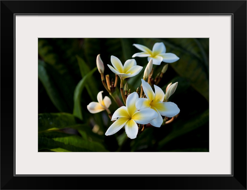 <p>USA, Hawaii, Island of Hawaii, Kailua Kona, Close up of Singapore Plumeria ( Plumeria obstusa).</p>