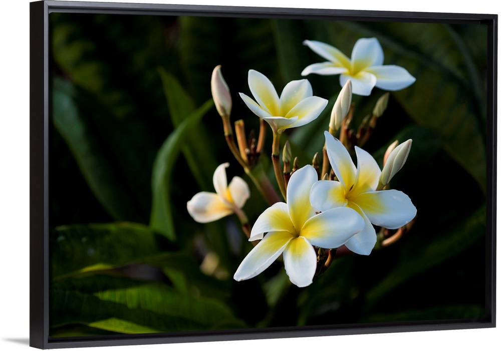 <p>USA, Hawaii, Island of Hawaii, Kailua Kona, Close up of Singapore Plumeria ( Plumeria obstusa).</p>