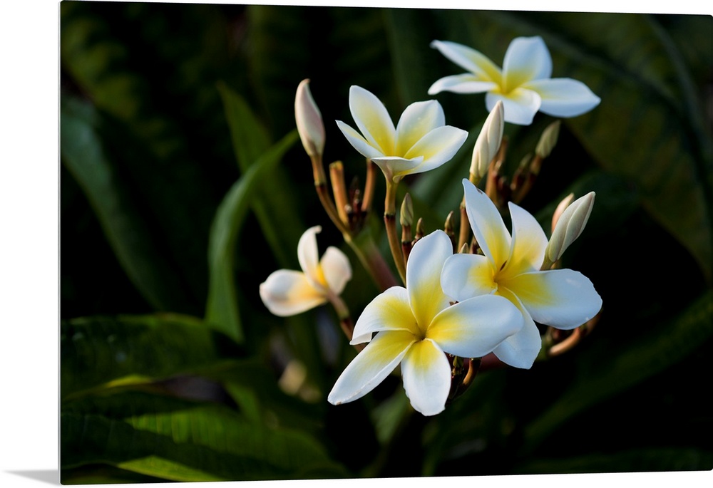 <p>USA, Hawaii, Island of Hawaii, Kailua Kona, Close up of Singapore Plumeria ( Plumeria obstusa).</p>