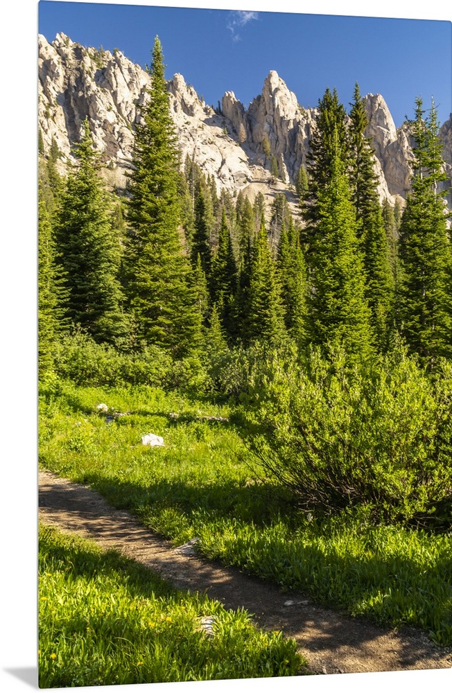 <p>USA, Idaho, Sawtooth Wilderness. Trail in mountain and valley landscape.</p>