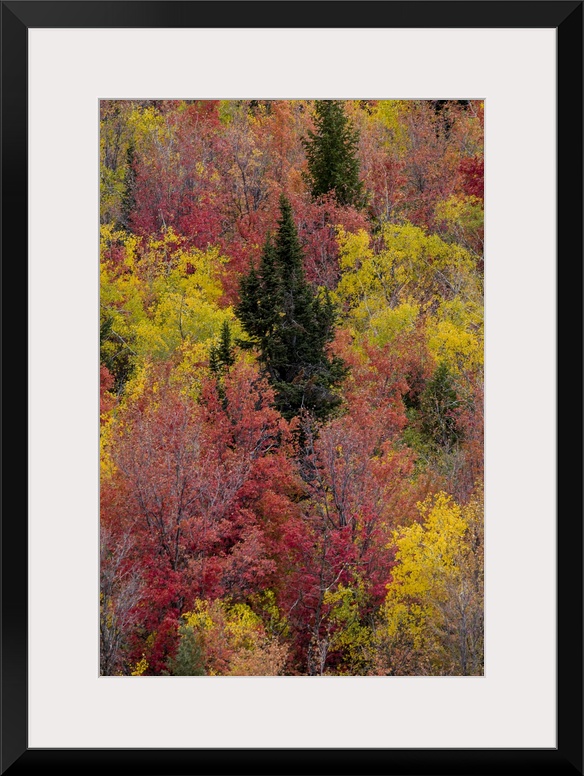 <p>USA, Idaho. St. Charles along Green Canyon Road with hillside blazing in fall color with canyon maple and Aspens.</p>