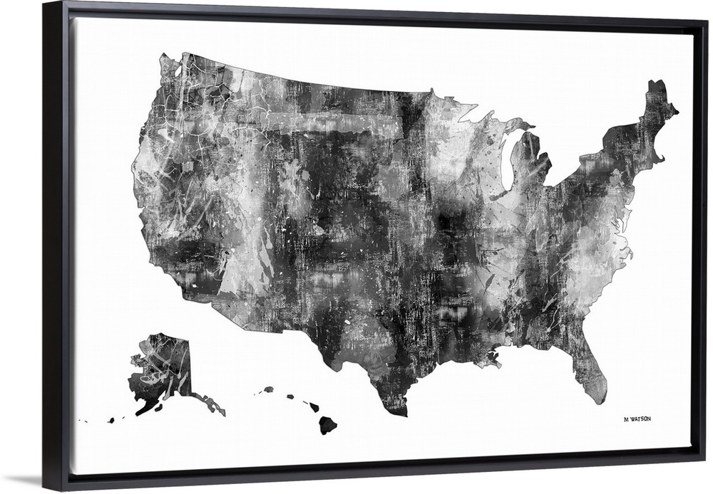 <p>Contemporary black and white watercolor art map of the USA.</p>