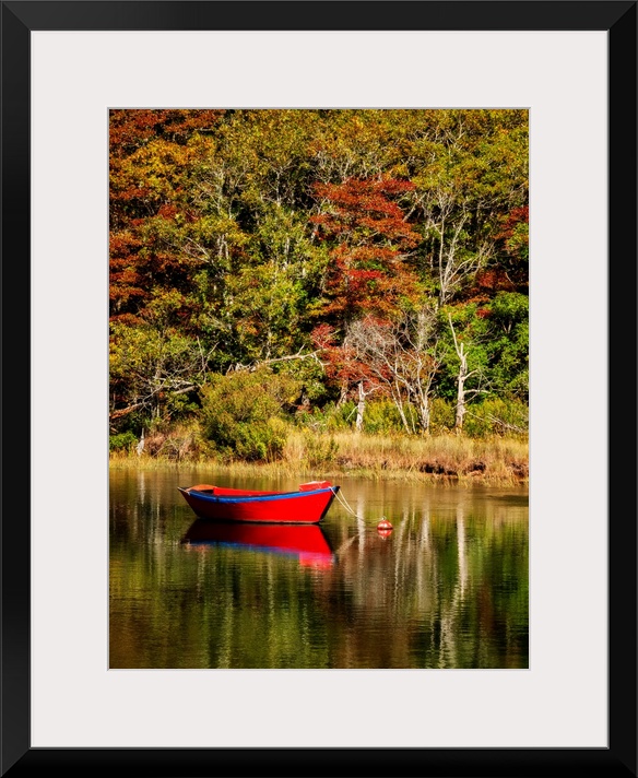 <p>USA, Massachusetts, Cape Cod, Red dory on Herring River</p>