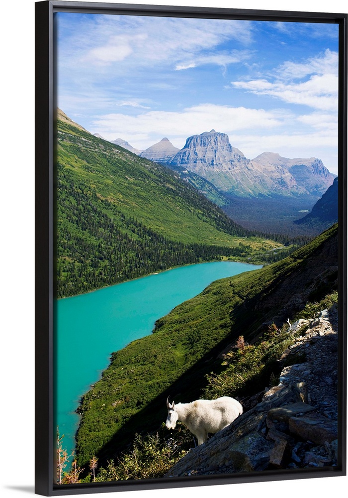 <p>USA, Montana, Glacier National Park, Mountain goat, high angle view</p>
