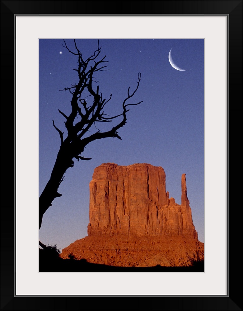 <p>USA, Monument Valley, single mitten and silhouette of branch</p>