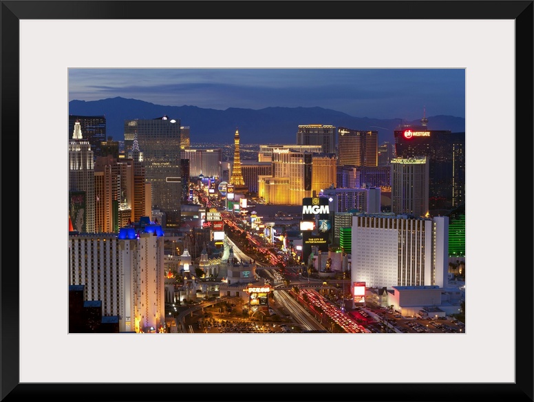<p>United States of America, Nevada, Las Vegas, Elevated dusk view of the Hotels and Casinos along the Strip</p>