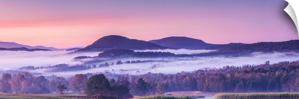 <p>USA, New England, Vermont, Peacham, Morning Fog, Autumn</p>