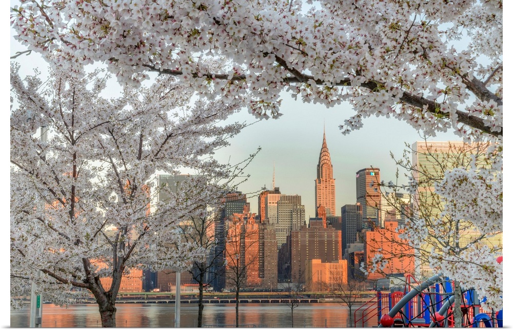 <p>USA, American, New York, Chrysler Building and Midtown Skyline from Long Island City in spring.</p>