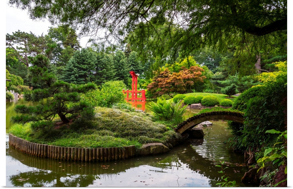 <p>USA, New York City, Brooklyn Botanic Garden, Japanese garden, Torii gate.</p>